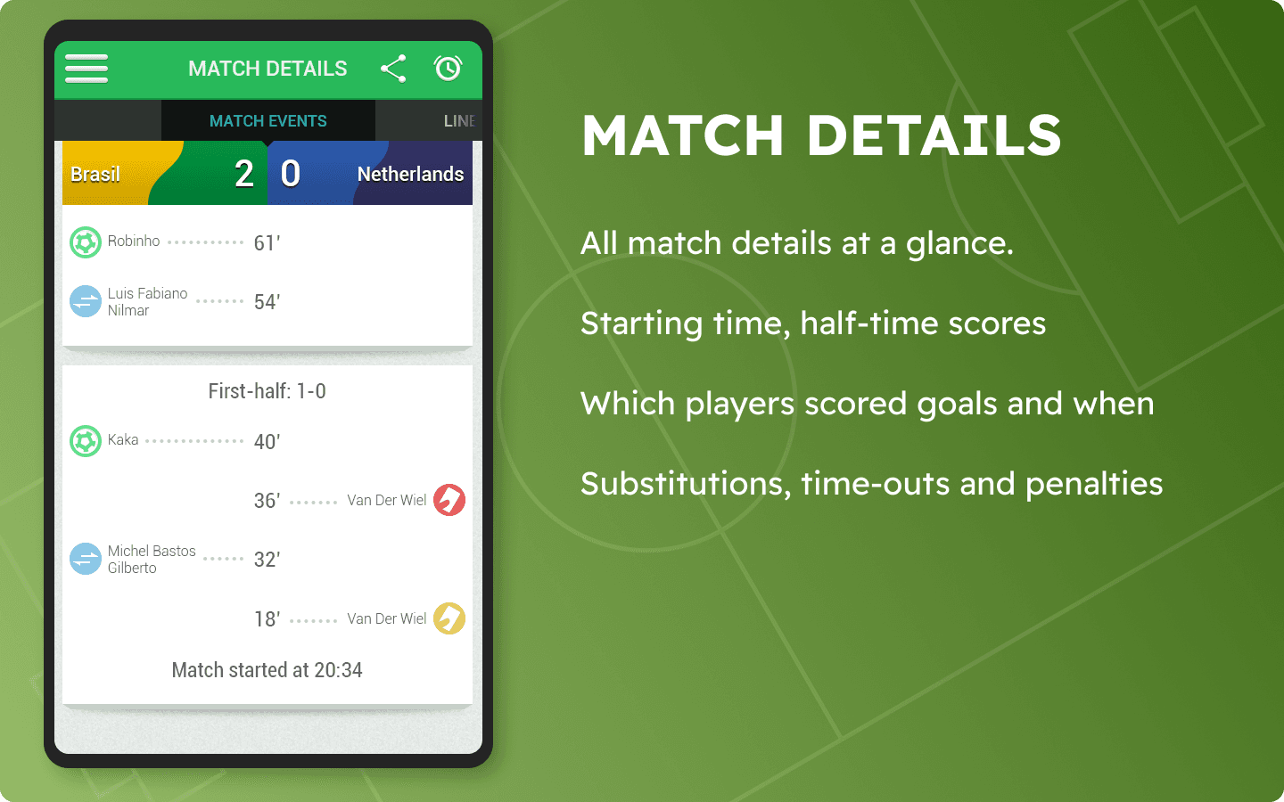 LiveGoals is an Android app where users could follow soccer matches live or get push notifications with scores, highlights and other match events. My role on this project was to design the UI and handover the assets to the developers.